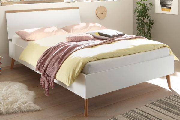 Bett "Helge" in weiß und Eiche Riviera Einzelbett skandinavisch Liegefläche 140 x 200 cm