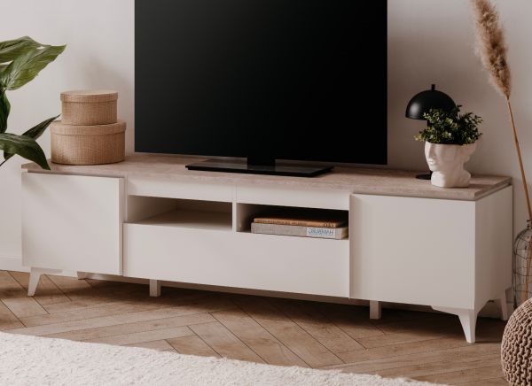 KostenloseTV-Lowboard "Visby", weiß und Sandstein Dekor, 177 x 52 cm
