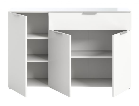 Kommode "Riano" in weiß mit Glasauflage Sideboard 135 cm, Soft-Close-Funktion