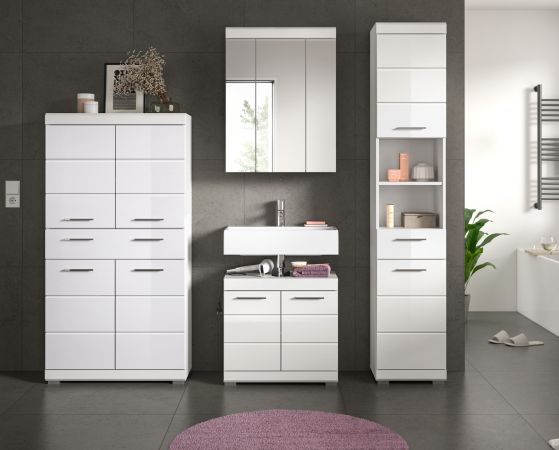 Badezimmer Midischrank "Shawn" in weiß Hochglanz Badschrank 74 x 141 cm