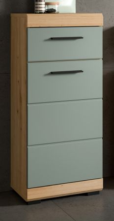 Badezimmer Kommode "Shawn" in Salbei grün und Artisan Eiche Badschrank 37 x 88 cm