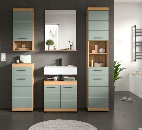 Badmöbel Set 5-teilig "Shawn" in Salbei und Artisan Eiche Badkombination 164 x 191 cm