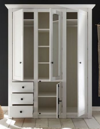 Schlafzimmer komplett "Hooge" in Pinie weiß Landhaus Set mit Bett, Kleiderschrank, Kommode und Nachttisch