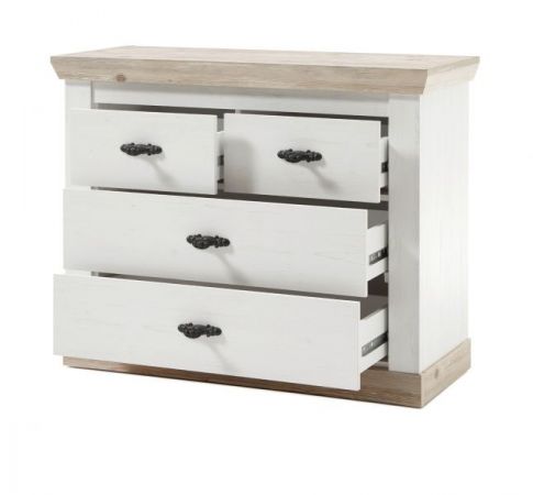 Kommode "Rovola" in Pinie weiß / Oslo Pinie Landhaus 107 x 84 cm Schubladenkommode