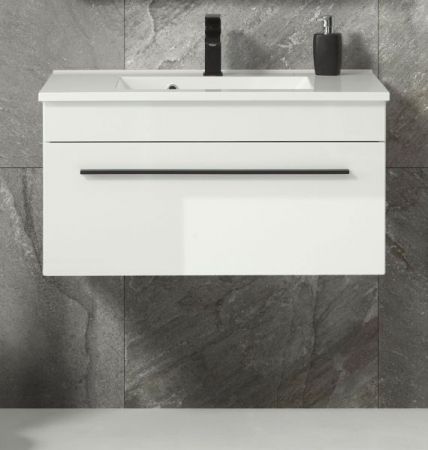 Waschbeckenunterschrank MIT Waschbecken "Design-D" in weiß Hochglanz Waschtisch Set hängend 80 x 43 cm