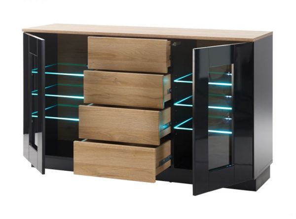 Sideboard "Savanna" in schwarz Hochglanz und Grandson Eiche Kommode 136 x 85 cm