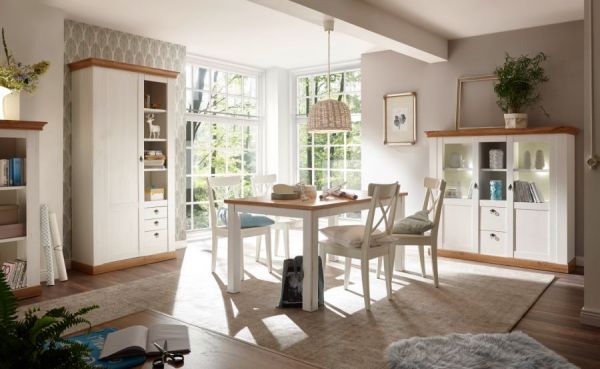 Highboard "Hemsby" in weiß Pinie und Eiche Wotan Landhaus Anrichte 148 x 139 cm
