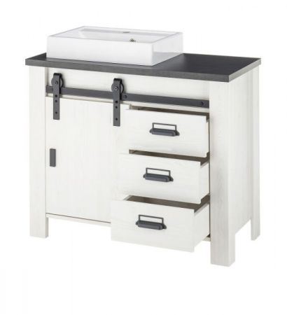 Waschbeckenunterschrank MIT Waschbecken "Stove" in weiß Pinie und anthrazit Landhaus Waschtisch 95 cm