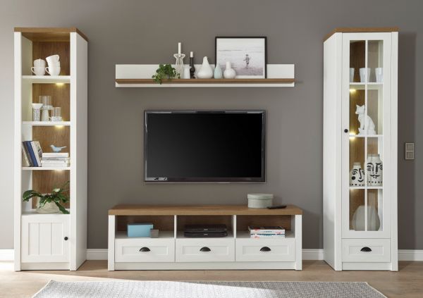 TV-Lowboard "Seyne" in weiß Pinie und Eiche hell Landhaus TV Unterteil 160 x 47 cm