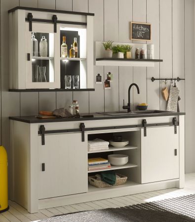 Küche Hängeschrank "Stove" in weiß Pinie und anthrazit Landhaus Küchenschrank hängend 93 x 90 cm