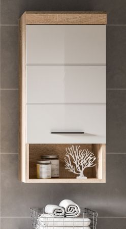 Badezimmer Hängeschrank "Mambo" in weiß Hochglanz und Sonoma Eiche Badschrank hängend 37 x 79 cm