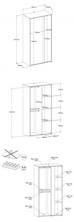- Kleiderschrank B/H/T ca.: 90/182/51 cm