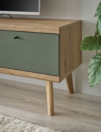 Wohnwand "Juna" in Salbei und Evoke Eiche Wohnkombination skandinavisch 4-teilig 324 cm